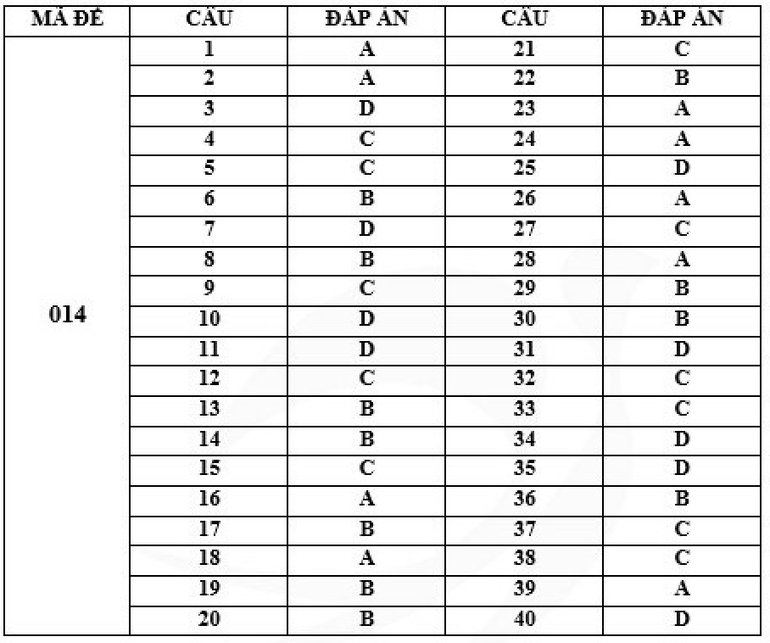 | Gợi ý đáp án mã đề 012 (Gợi ý đáp án do các giáo viên Trường trung học phổ thông Hòa Bình La Trobe Hà Nội thực hiện. Thí sinh dùng để tham khảo) |