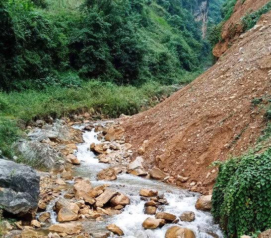 Việc khai thác đá làm vùi lấp dòng suối tại mỏ đá thôn Cốc Soọc, xã Thèn Phàng, huyện Xín Mần.