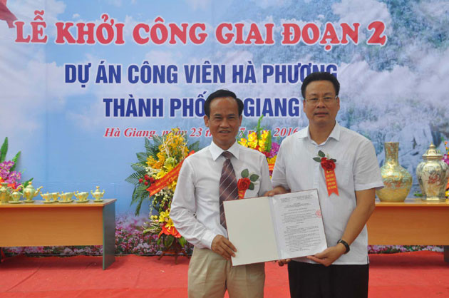 Tại lễ khởi công, Chủ tịch UBND tỉnh Hà Giang Nguyễn Văn Sơn đã trao quyết định về việc chấp thuận thực hiện dự án đầu tư xây dựng công viên Hà Phương giai đoạn hai cho lãnh đạo Công ty Sông Lô. Đồng thời phát biểu khẳng định việc Công ty Sông Lô tiếp tục đầu tư dự án sau gần 10 năm gián đoạn có tác động tích cực đến môi trường đầu tư của tỉnh Hà Giang. Đây cũng là sự kiện cụ thể hóa quyết tâm của tỉnh là luôn đồng hành cùng doanh nghiệp, thu hút đầu tư.