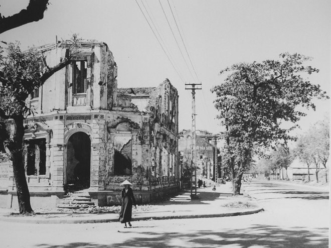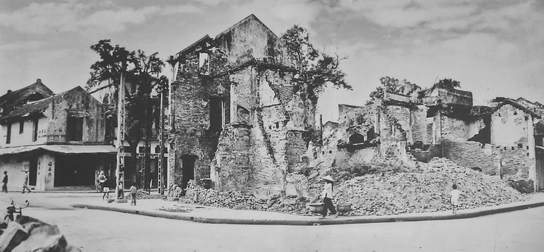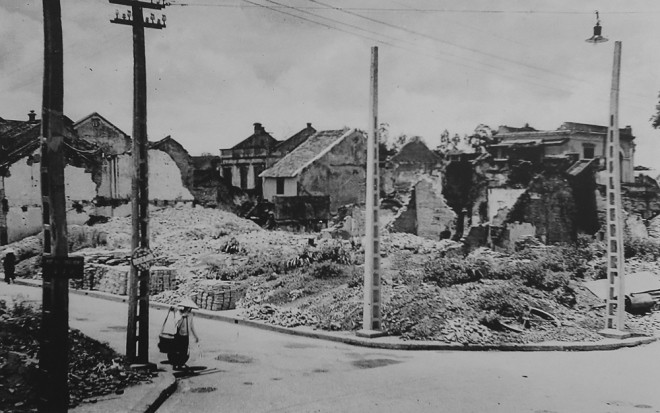 Các con phố Hàng Thiếc, Hàng Gai, Tô Tịch, Hàng Chiếu, khu vực Văn Miếu, góc phố Hàng Gai – Hàng Đào, ngã ba Bát Sứ - Bát Đàn, phố Trần Nhật Duật, phố Hàng Da, Hàng Giấy…, tất đều chung một khung cảnh đổ nát với những núi gạch vụn chồng chất, những bức tường nham nhở chĩa lên trời xanh, những căn nhà cổ đổ nát đôi chỗ vẫn còn nguyên họa tiết trang trí cổ… Góc này là Trường "Ke" (Quai) còn có tên là Jean Dupuis, nay là trường Trần Nhật Duật nơi diễn ra những trận đánh ác liệt vào cuối năm 1946 với mái bung chỉ còn trơ khung, cửa sổ tan nát, tường thủng lỗ chỗ vết đạn bắn…, chỗ kia là tòa nhà Thương Bạc nơi thu thuế đầu cửa Ô Quan Chưởng (góc Hàng Chiếu) sạt một mảng tường lớn trên tầng 2, các ô cửa cũng tan tành, gạch vữa rơi đầy bậc lên xuống và tràn cả ra vỉa hè… Ngã ba Bát Sứ - Bát Đàn, những ngôi nhà trơ trọi mảng tường nham nhở, cả góc phố là đống gạch vụn bên những gì còn lại của những bức tường đổ nát và ám khói đen sẫm. Phố Lò Rèn bị máy bay Pháp ném bom trong trận chiến Đồng Xuân, chỉ còn lại những đống gạch lớn nối nhau bên những căn nhà không còn nguyên vẹn dù chỉ một khung cửa.