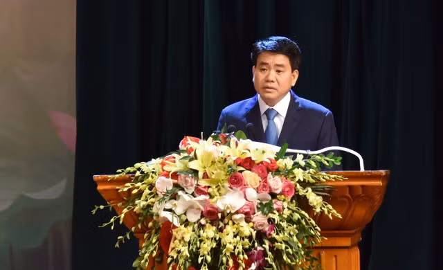 Đồng chí Nguyễn Đức Chung, Chủ tịch UBND thành phố phát biểu tại hội nghị.