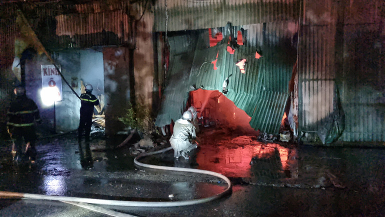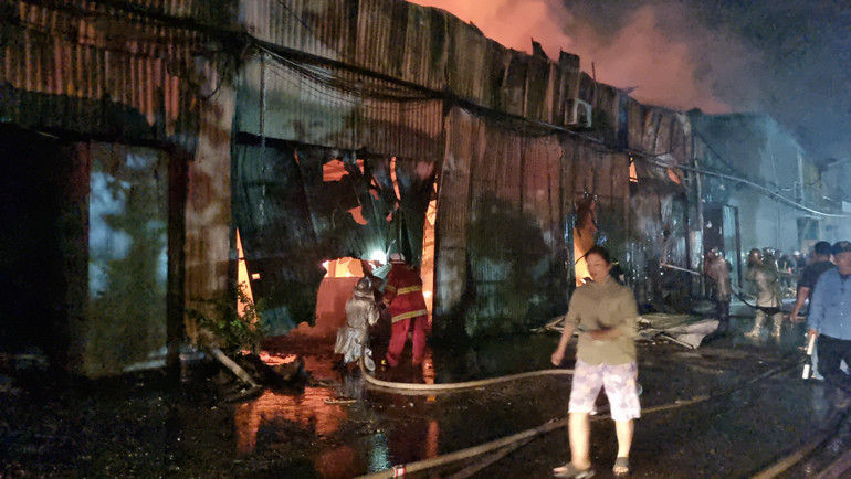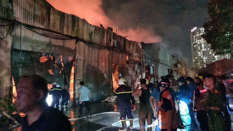 Đến 23 giờ, đám cháy vẫn chưa được khống chế. Hiện chưa có thông tin thiệt hại về người, thiệt hại về tài sản đang được thống kê.