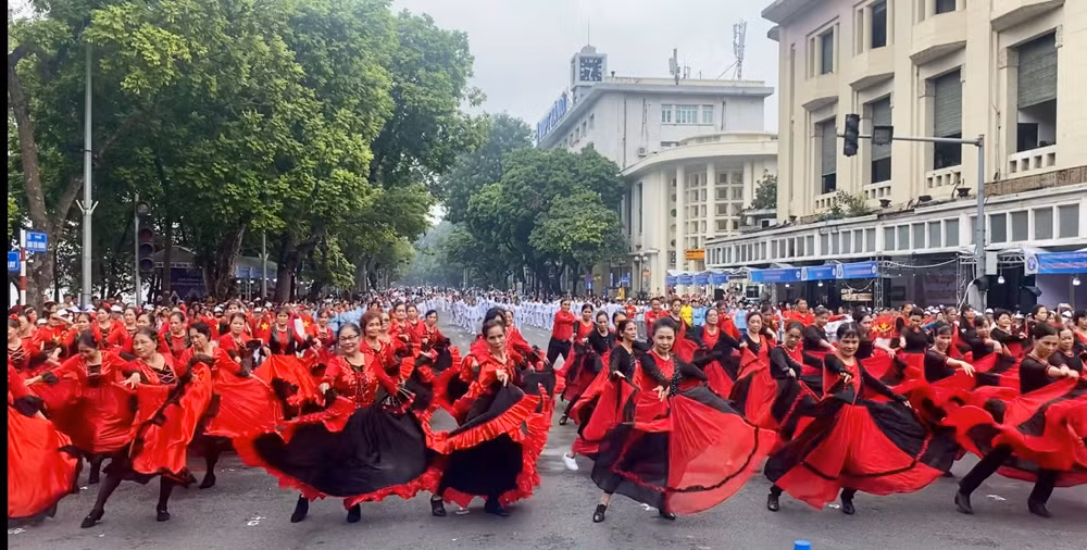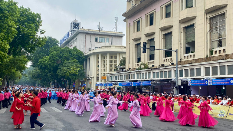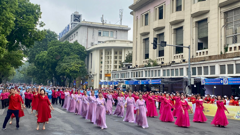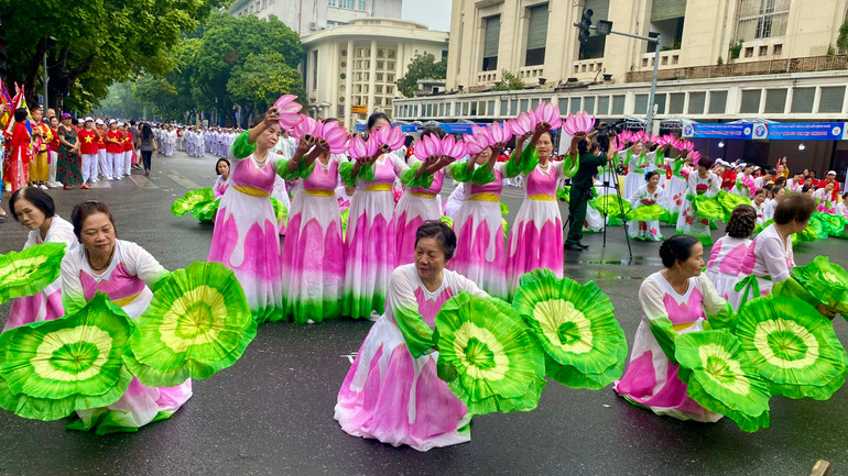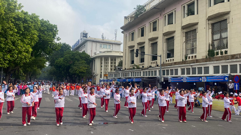Tại ngày hội này, người dân Thủ đô đã chứng kiến những màn đồng diễn của hơn 2000 hội viên Hội Sức khỏe ngoài trời người trung cao tuổi thành phố Hà Nội. Những động tác linh hoạt, khỏe khoắn kết hợp với thần thái tươi tắn của các diễn viên, vũ công ở độ tuổi 70, 80 đã làm cho các màn đồng diễn thêm ấn tượng.