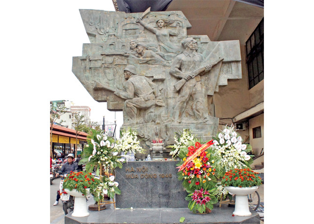 Bức phù điêu Hà Nội mùa đông 1946 đặt bên cổng chợ Đồng Xuân (Hà Nội) tái hiện cuộc chiến đấu anh dũng của quân và dân Liên khu I chống thực dân Pháp xâm lược. Ảnh: Trần Hải