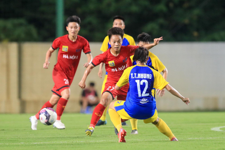 Hà Nội I với đội hình gồm nhiều tuyển thủ quốc gia song không thể tìm được đường vào khung thành đối phương trong suốt hiệp 1. Hải Yến và các đồng đội chơi chưa thực sự áp đảo.