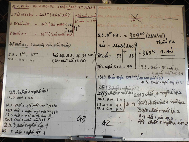 Bảng ghi số cừu chết hằng ngày tại trang trại của anh Trần Công Hòa, ở thôn Đồng Dày, xã Phước Trung, huyện Bác Ái, tỉnh Ninh Thuận.