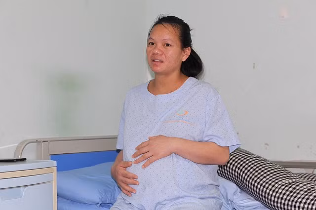 Sản phụ Phạm Thị Tơ không giấu được hạnh phúc khi chuẩn bị đón con chào đời sau chín năm đi khắp nơi chạy chữa, điều trị.