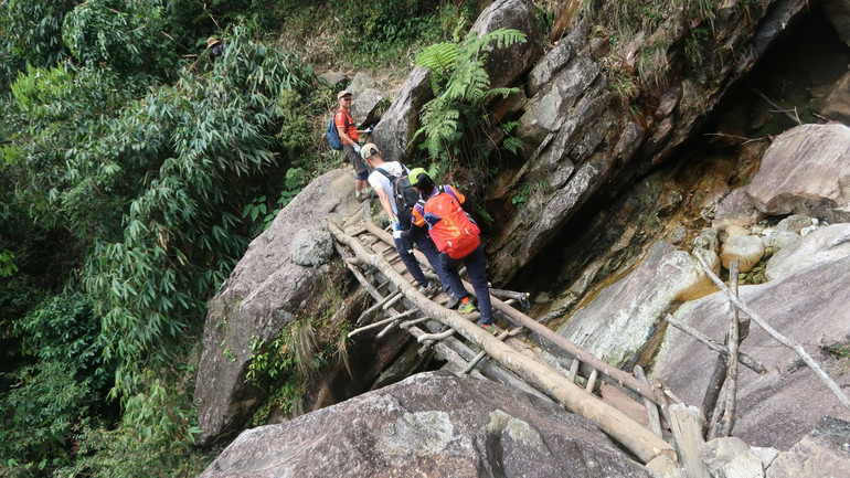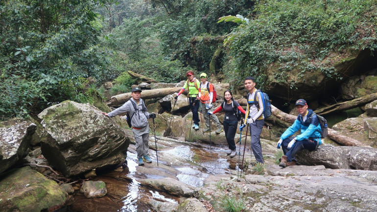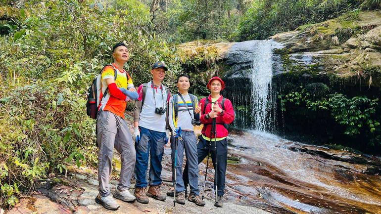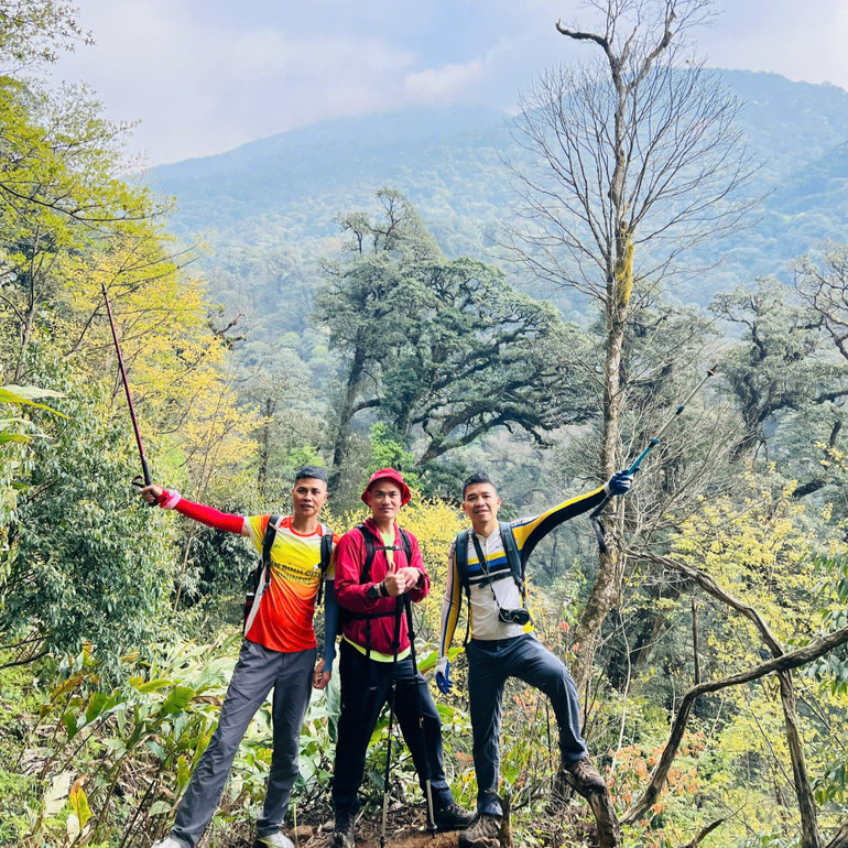 Hơn 2 ngày liên tục di chuyển đường rừng, gần 40 km cả đi và về với cung đường hiểm trở, “lên thác, xuống ghềnh” đủ vắt cạn sức của cả người khỏe nhất đoàn. Nhưng cảm giác phấn khích được chạm vào khối tháp kim loại ở độ cao 2.881m luôn là động lực hối thúc những bước chân ngược núi.