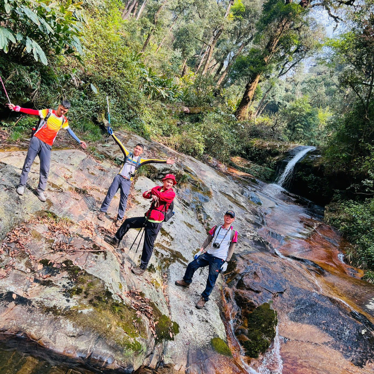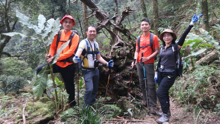Sáng hôm sau, mọi thủ tục cá nhân hoàn tất mau lẹ, để 7 giờ lên đường chinh phục đỉnh Nam Kang Ho Tao, mà dân phượt hay gọi vui là “nắn càng hộ tui”, “nằm cáng hộ tao”. Khung cảnh sáng sớm thật nên thơ với nắng vàng xuyên qua tán lá rừng, chim hót líu lo và quan trọng hơn là mọi người được hít căng lồng ngực nguồn dưỡng khí của thiên nhiên. Cung leo này không nhiều hoa rực rỡ như đỗ quyên ở Putaleng, nhưng ở đó, suối sâu, đèo cao, cổ thụ bao quanh là địa y xanh mượt, những vạt thảo quả xanh rì. Mỗi bước chân là những điều thú vị khác nhau. Trải nghiệm thêm hứng khởi khi có công nghệ hỗ trợ. Bằng thiết bị bay không người lái UAV, chúng tôi đã mang về từ rừng già những khung hình, cảnh quay vô cùng đẹp mắt về thiên nhiên bao la, núi non hùng vĩ của miền Tây Bắc.