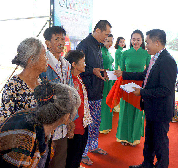 Đại diện chủ đầu tư trao quà cho hộ gia đình chính sách tại Cà Mau.
