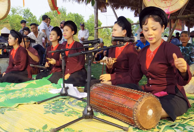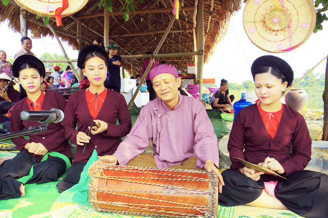 Các nghệ sĩ Nhà hát chèo Việt Nam trong một tiết mục Xẩm