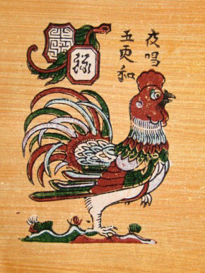 Quan niệm dân gian xưa, gà trống với tiếng gáy vang tận đỉnh núi cao làm ma quỷ khiếp sợ, gọi ánh sáng xua tan bóng tối, là biểu tượng của thần hộ mệnh, diệt trừ, chế ngự cái xấu. Chính vì vậy, hình ảnh con gà xuất hiện trong mỹ thuật dân gian khá sớm.