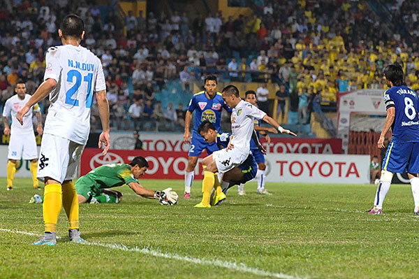 Trên chấm 11 mét, Văn Quyết hoàn thành xuất sắc nhiệm vụ, mang về bàn thắng thứ ba cho đội chủ sân Hàng Đẫy.