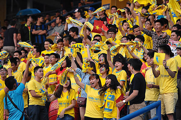 Ở góc sân Hàng Đẫy, các CĐV của HA.GL cũng lặn lội từ Pleiku đến ủng hộ cho thầy trò HLV Guillaume Graechen. (ảnh: Linh Phan/NDĐT)
