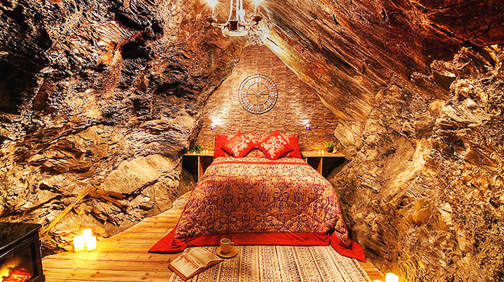 Nằm trong một khu mỏ bỏ hoang, ở độ sâu 419m dưới dãy núi Snowdonia ở Xứ Wales (thuộc Vương quốc Anh), “Deep Sleep” được mệnh danh là khách sạn sâu nhất thế giới. Theo Oddity Central, khách sạn này bao gồm bốn phòng riêng với hai giường đơn, phòng dạng hang động với giường đôi (trong ảnh) và một nhà hàng. Các khách hàng phải chi trả tới 550 bảng Anh để qua đêm tại khách sạn này.
