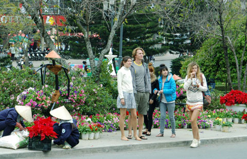 Khách quốc tế đến với lễ hội hoa Đà Lạt.