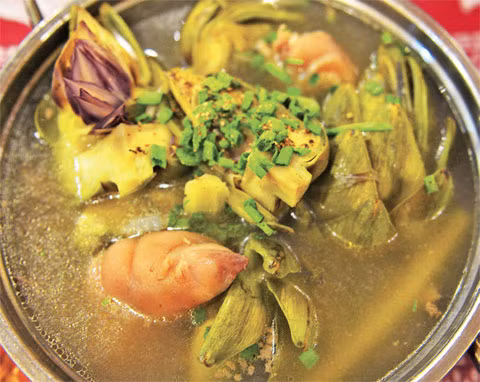 | Món khoái khẩu nhất từ hoa atisô phải là atisô hầm móng giò, hiệu quả phục hồi sinh lực đáng kể sau những chuyến lãng du rã rời nắng gió. |