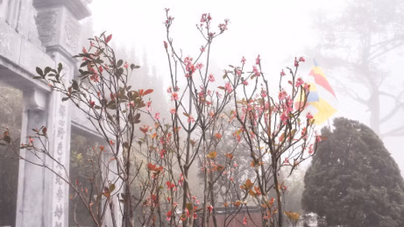Điều đặc biệt, trong sương sớm của Bà Nà, sắc đỏ của hoa đào chuông bất chợt khiến lòng người lắng lại, giữa một mùa xuân mới.