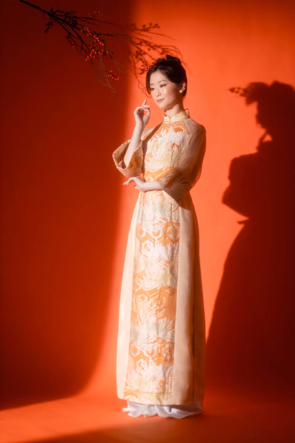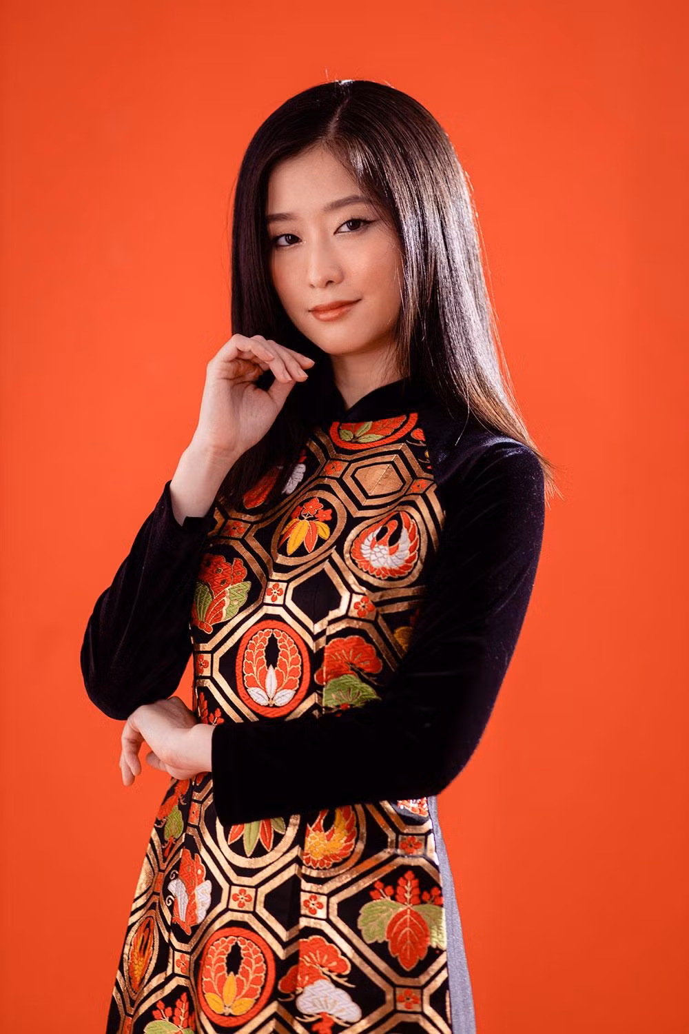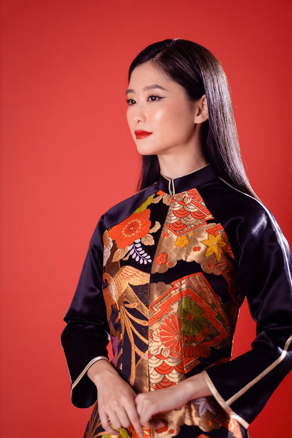 Nhà thiết kế trẻ chia sẻ: “Thực ra làm áo dài từ Obi rất khó, bởi Obi thường được làm từ chất liệu khá cứng, không phù hợp với dáng mềm mại của áo dài. Ngoài ra, khi cắt xẻ để phối với áo dài, tấm Obi cũng dễ bị tưa, ảnh hưởng đến phần thêu trang trí trên đó. Chính vì thế, tôi lựa chọn kết hợp Obi với các chất liệu truyền thống của Việt Nam như tafta và cả lụa. Áo dài được thiết kế từ Obi cũng có form cứng cáp chứ không mềm mại thướt tha như áo dài lụa truyền thống”.