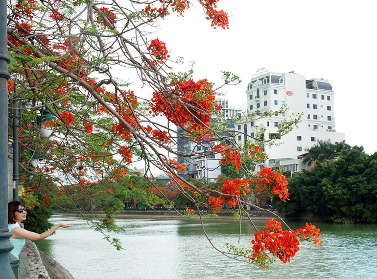 Khu vực bờ hồ Tam Bạc ở trung tâm thành phố cũng là nơi được trồng nhiều hoa phượng tại Hải Phòng.