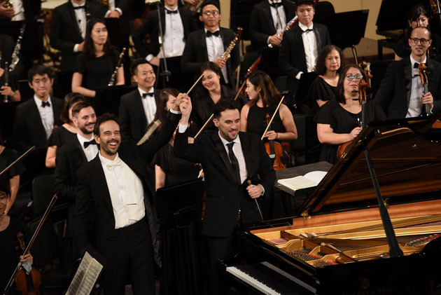 Nhạc trưởng Olivier Ochanine và nghệ sĩ Iván Martin cảm ơn những tràng pháo tay không dứt của khán giả.