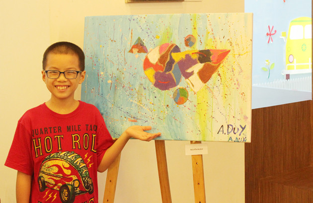 Các bạn họa sĩ nhí cũng tỏ ra rất hào hứng thích thú khi được tham gia sự kiện này. Bạn Anh Duy, 10 tuổi (ảnh trên), chủ nhân bức tranh được bán với giá cao nhất trong buổi triển lãm, hồ hởi: “Con rất vui và tự hào khi bức tranh của mình có thể giúp được cho các bạn nhỏ có được cơ thể lành lặn”.
