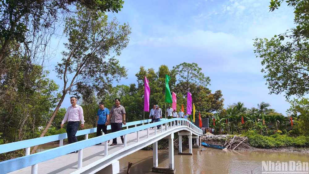 | Người dân vùng quê huyện Đầm Dơi bày tỏ vui mừng khi Cầu Lung Dừa hoàn thành, giúp việc đi lại thuận lợi. |