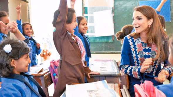 Khi hoàng hậu vào thăm trường học.
