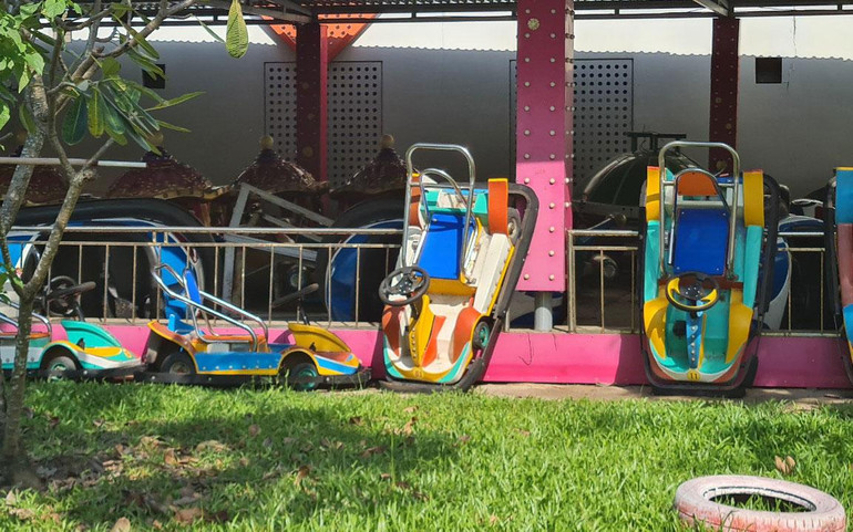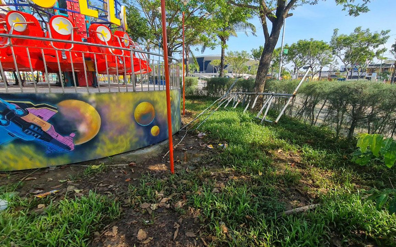 Khu vui chơi cho trẻ em ở phía đường Phan Đăng Lưu cũng bỏ hoang, với các loại xe điện, tàu điện cho trẻ vui chơi chất thành đống, rỉ sét và hư hỏng, hệ thống dây điện chạy nổi trên mặt đất, gây nguy hiểm cho cả người lớn lẫn trẻ em.