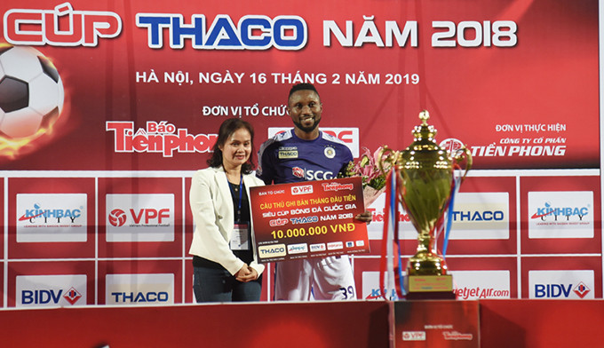 Trung phong Hoàng Vũ Samson nhận danh hiệu Cầu thủ ghi bàn thắng đầu tiên.