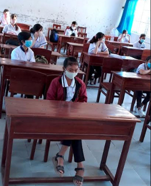 Thầy Phan Thành Văn cho biết thêm: “Bên cạnh việc sắp xếp lại thời khoá biểu, chúng tôi tách mỗi lớp thành ba lớp, mỗi lớp từ 13-14 học sinh để bảo đảm khoảng cách, nếu dư học sinh thì đưa sang lớp khác. Chia lớp như vậy không đủ giáo viên nên chúng tôi yêu cầu giáo viên khối khác hỗ trợ giảng dạy để bảo đảm lượng kiến thức cho các em”.