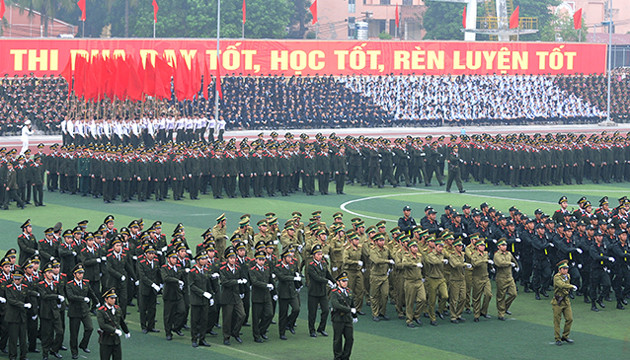 Lễ diễu binh, diễu hành chào mừng năm học mới tại Học viện An ninh nhân dân.