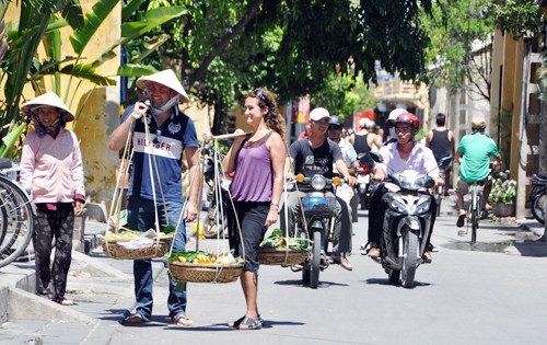 Du khách thân thiện trên phố cổ Hội An. Ảnh: ANH ĐÀO