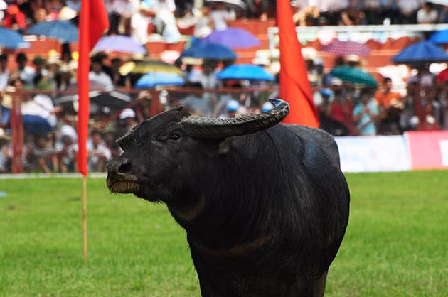 "Ông Trâu" chiến thắng được chủ nuôi vỗ về sau trận đấu. Đây cũng là một hình ảnh đẹp và rất quen thuộc, gợi nhớ đến nền nông nghiệp lúa nước của Việt Nam.