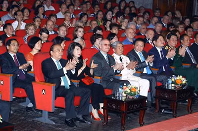 Thủ tướng Nguyễn Xuân Phúc cùng phu nhân và ông N. Kolesnik trong Lễ kỷ niệm 100 năm Cách mạng Tháng Mười Nga tại Việt Nam.