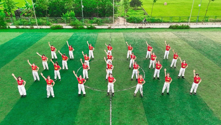Để màn đồng diễn ấn tượng, với số người tham gia kỷ lục, trong những ngày qua, cán bộ, hội viên Hội Liên hiệp phụ nữ các xã, phường, thị trấn đã tập luyện hăng say, miệt mài, không quản ngại nắng mưa.