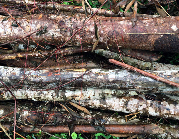 Cụ thể, các diện tích bị chặt hạ tại lô 1 với diện tích 2.260m2 và lô K với diện tích 4.263 m2, thuộc khoảnh 4, tiểu khu 717b, xã Pá Khoang, huyện Điện Biên, quy hoạch rừng đặc dụng với mức độ thiệt hại 80%, những cây có đường kính dưới 15cm và một số cây có đường kính 20-30cm đã bị chặt phá và đốt (ảnh dưới).