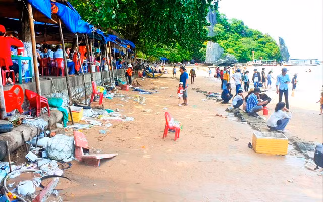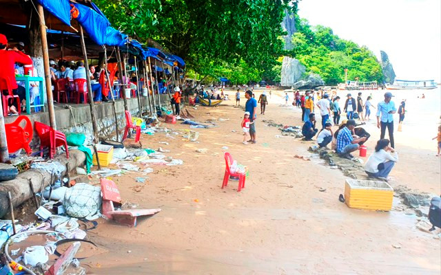 Rác thải sinh hoạt ngổn ngang tại thắng cảnh Hòn Phụ Tử.
