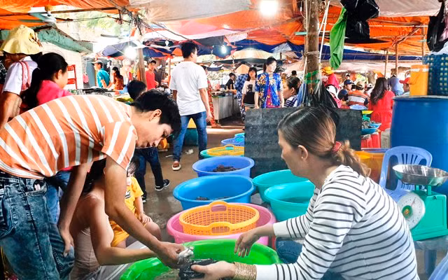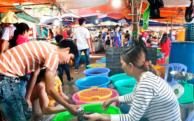 Cảnh mua bán, ăn uống ngay tại thắng cảnh Hòn Phụ Tử.
