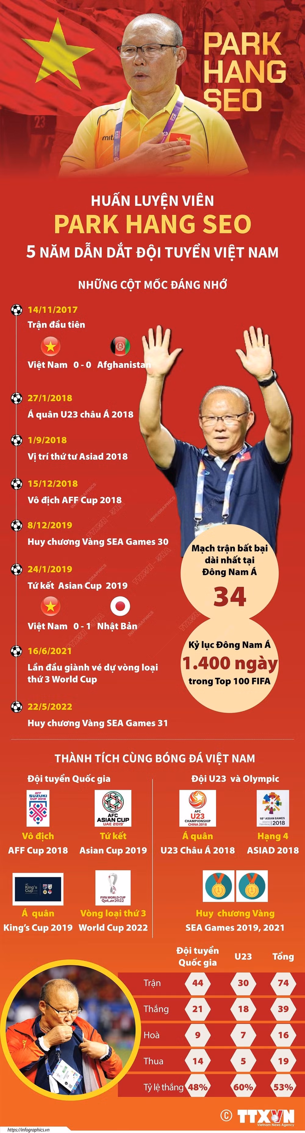 Huấn luyện viên Park Hang-seo: 5 năm dẫn dắt đội tuyển Việt Nam
