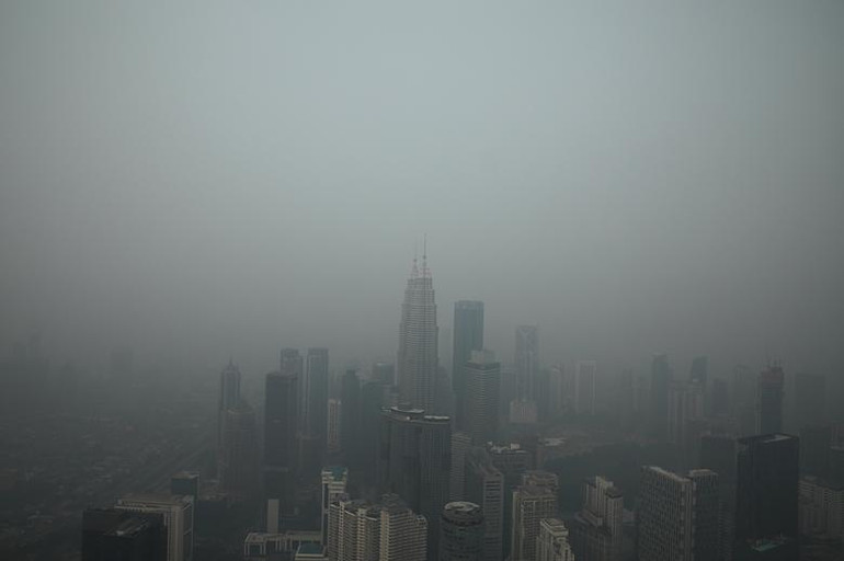 Thủ đô Kuala Lumpur, Malaysia bị bao phủ trong khói mù dày đặc ngày 13-9 (Ảnh: Reuters)