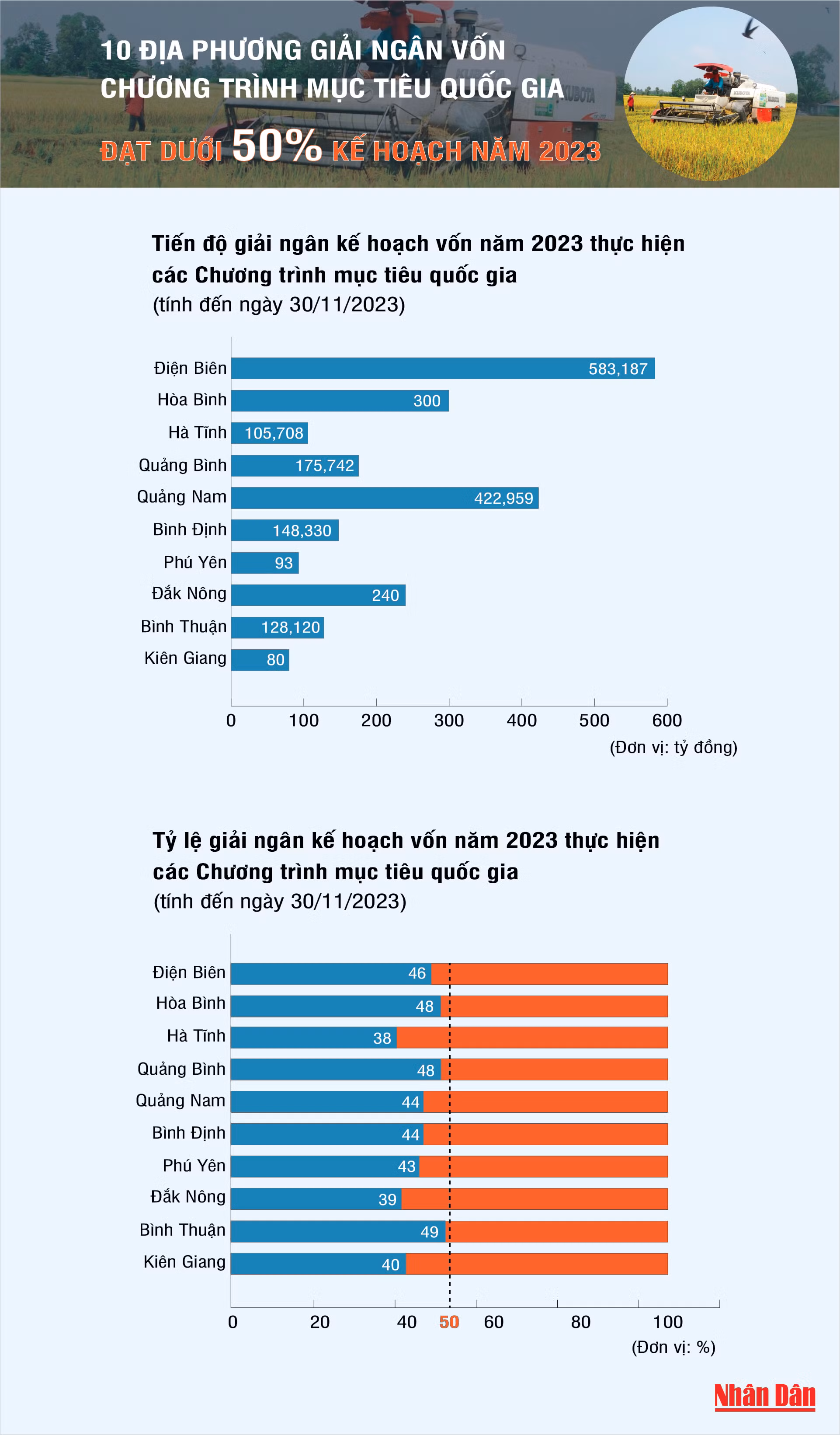 [Infographic] 10 địa phương giải ngân vốn Chương trình mục tiêu quốc gia đạt dưới 50% kế hoạch 2023