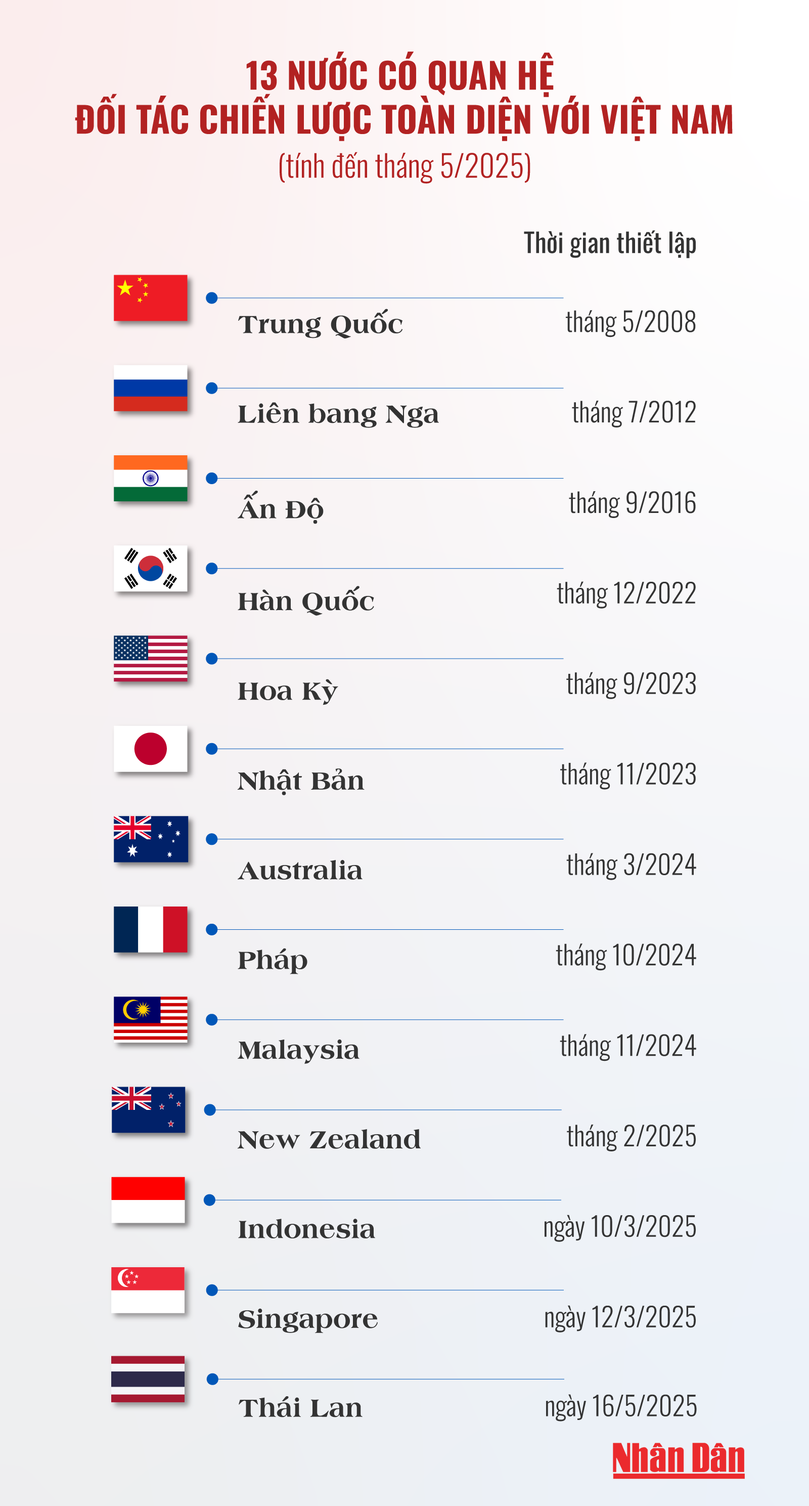 [Infographic] 13 nước có quan hệ Đối tác chiến lược toàn diện với Việt Nam