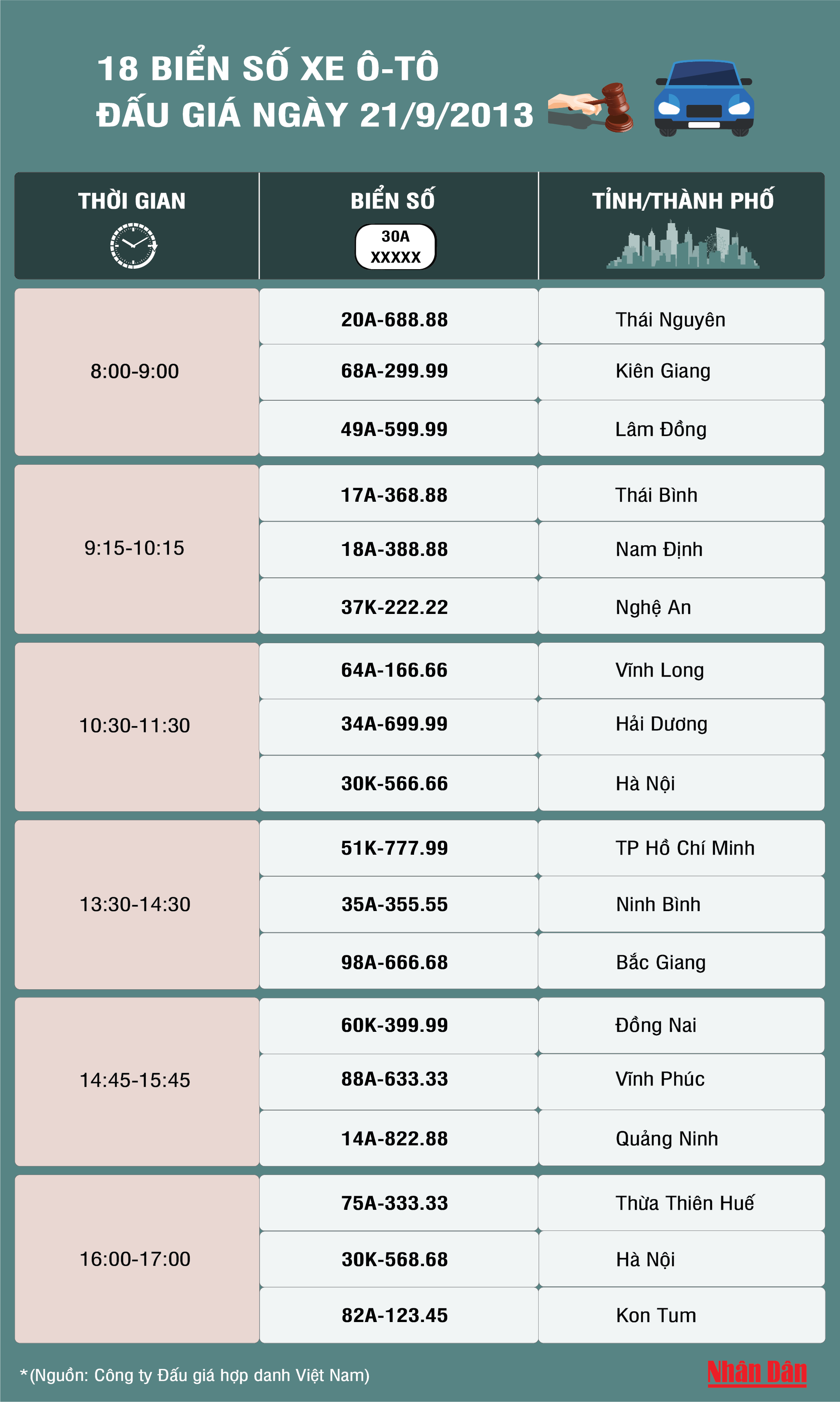 [Infographic] 18 biển số xe ô-tô được đấu giá ngày 21/9/2023