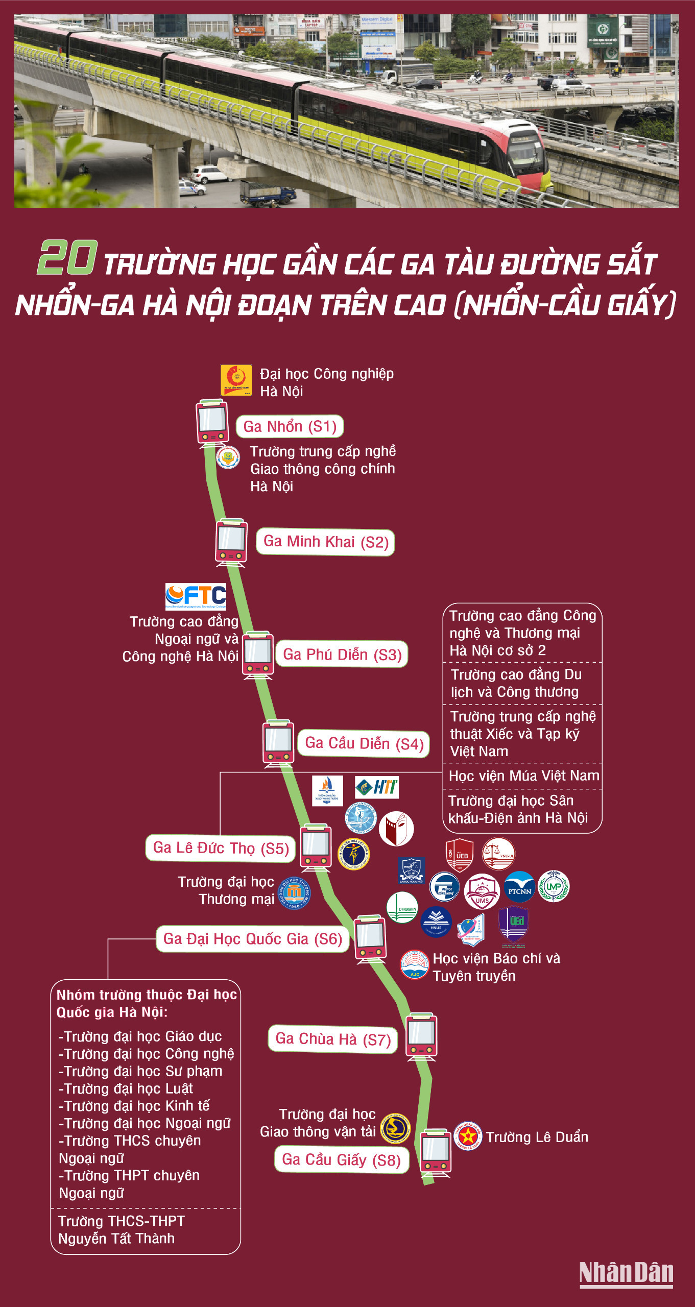 [Infographic] 20 trường học gần các ga tàu đường sắt Nhổn-ga Hà Nội đoạn trên cao