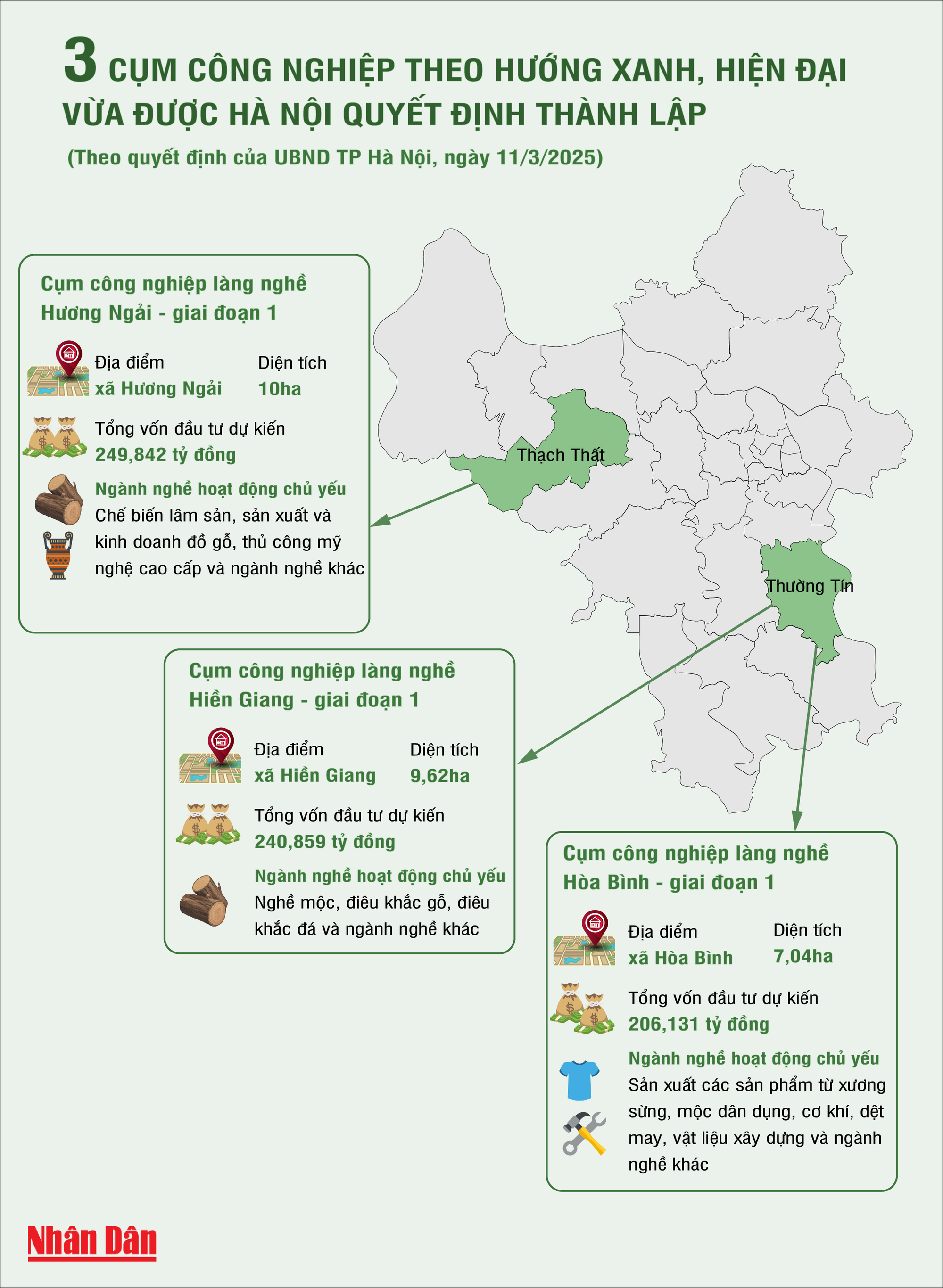 [Infographic] 3 cụm công nghiệp theo hướng xanh, hiện đại vừa được Hà Nội quyết định thành lập