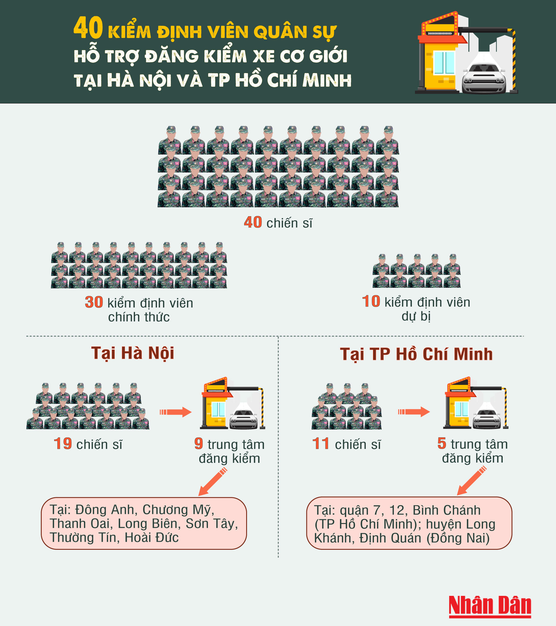 [Infographic] 40 kiểm định viên quân sự hỗ trợ kiểm định xe cơ giới