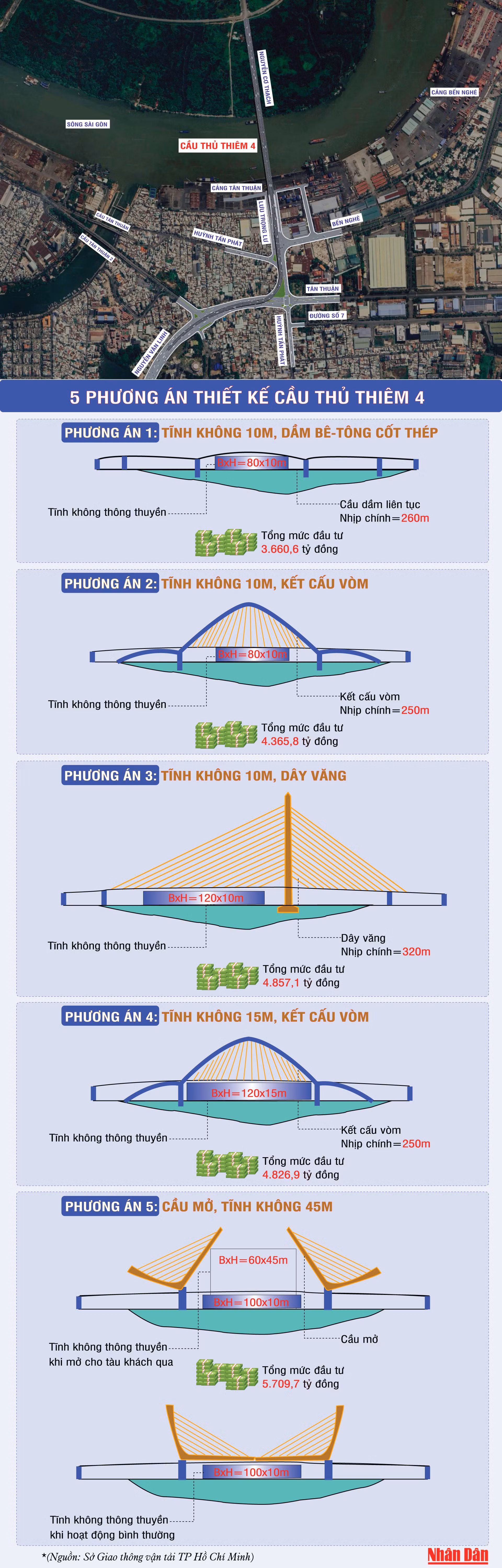 [Infographic] 5 phương án thiết kế cầu Thủ Thiêm 4