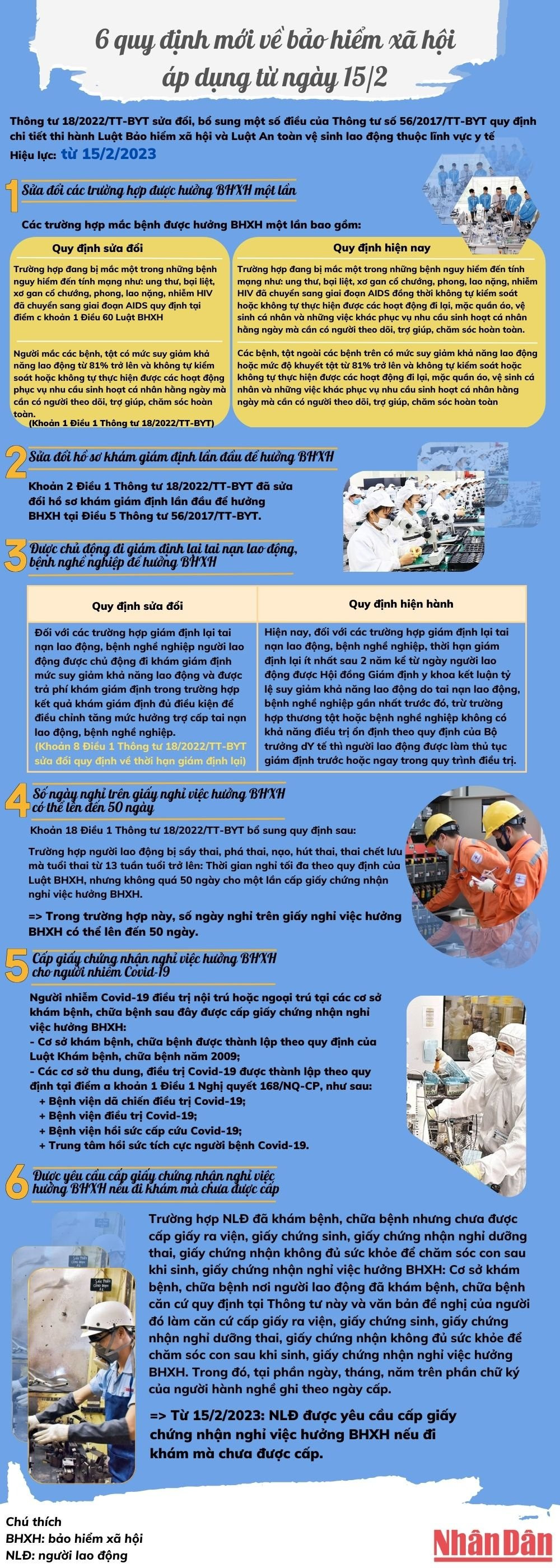 [Infographic] 6 quy định mới về bảo hiểm xã hội áp dụng từ ngày 15/2/2023
