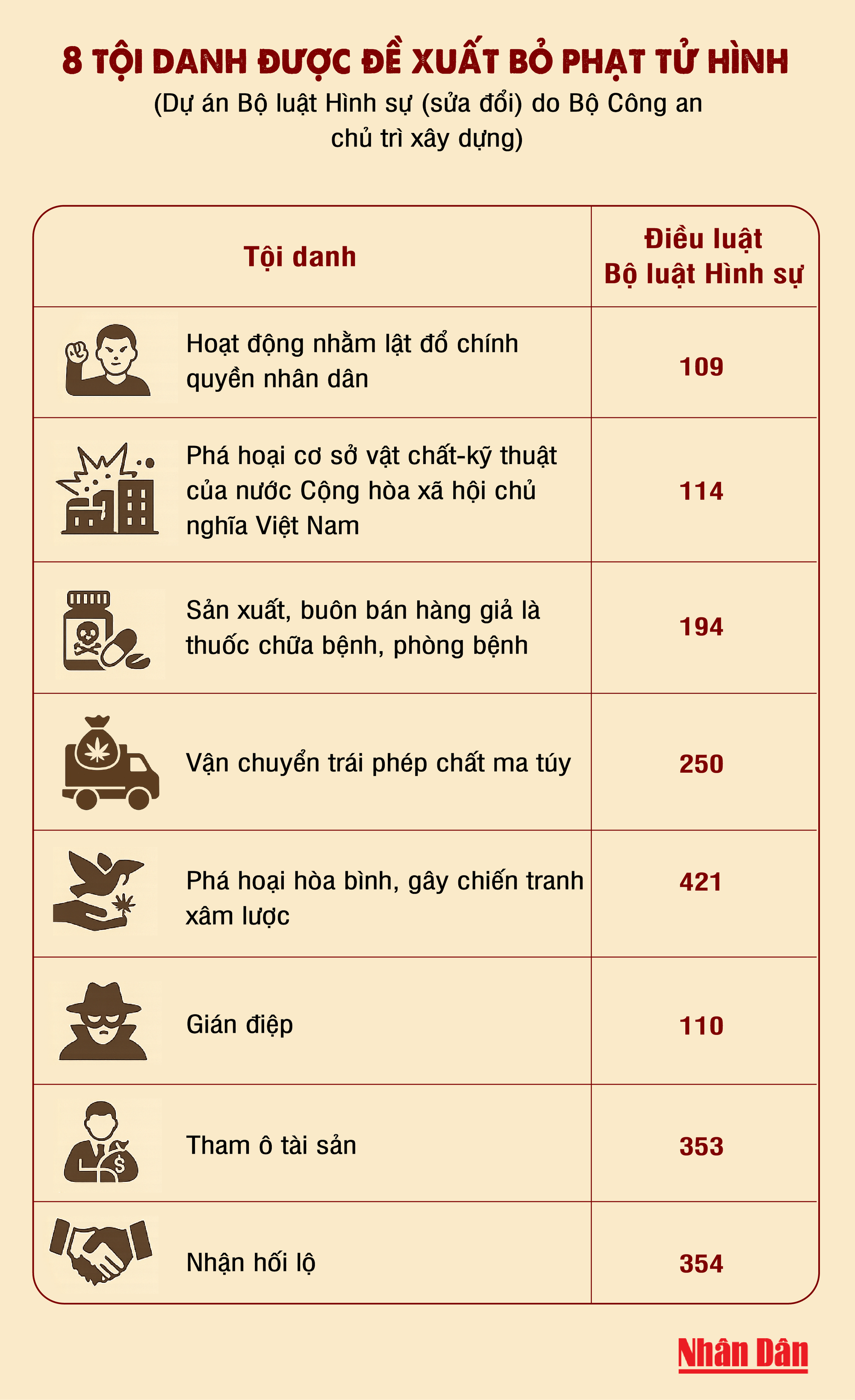 [Infographic] 8 tội danh được đề xuất bỏ phạt tử hình